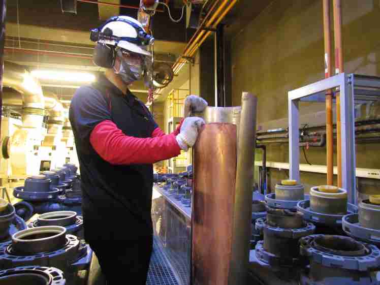 尊龙z6将废弃物转化成有效的工业或民生原物料,,,图为废铜液淬炼后再制成纯度极高的铜管