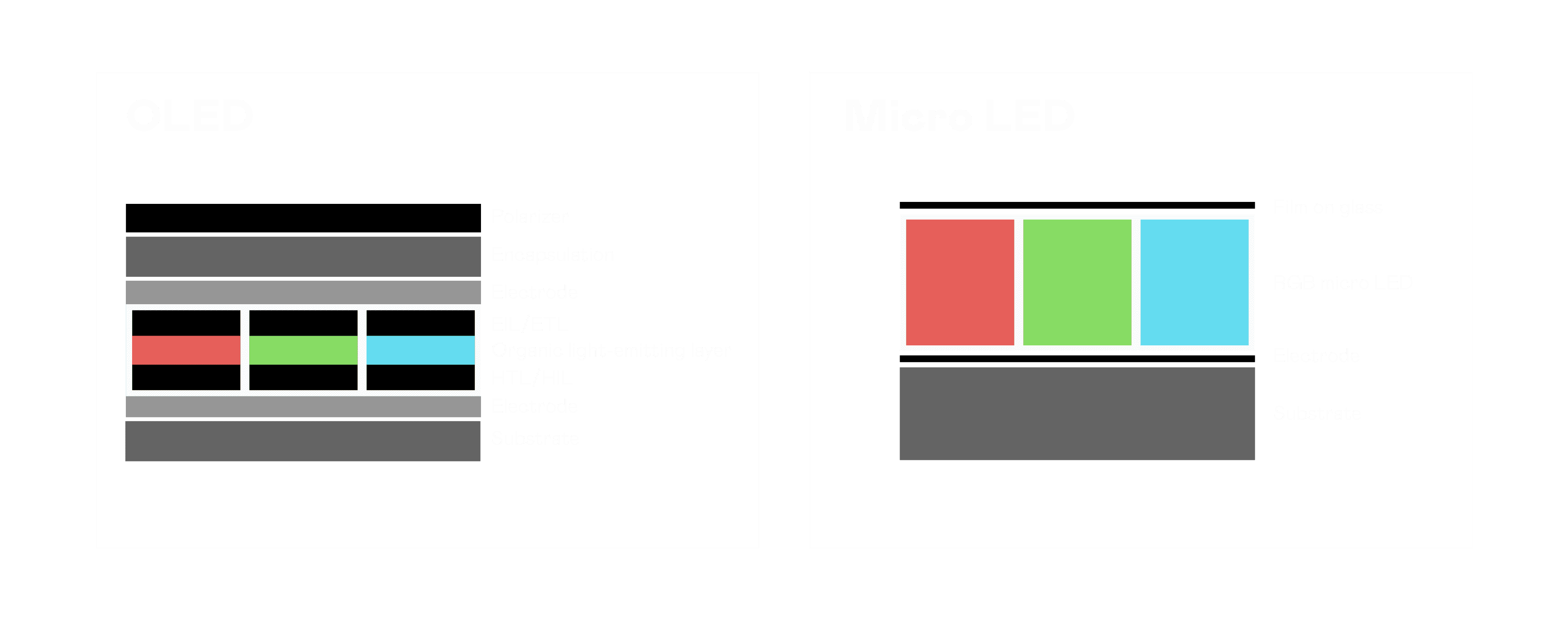 以 LED 做为显示画素,,,,可让 LED 的发光效率发挥到极致,,从而让显示器具备优异的亮度表现,,不论是在户外或室内,,,均具备出众的显示效果。。。同时,,,与使用有机材料的 OLED 相比,,LED 具备更稳定、、寿命更长的特性,,,,不仅不会有画面烙印问题,,,而且更不容易出现故障、、坏点。。。